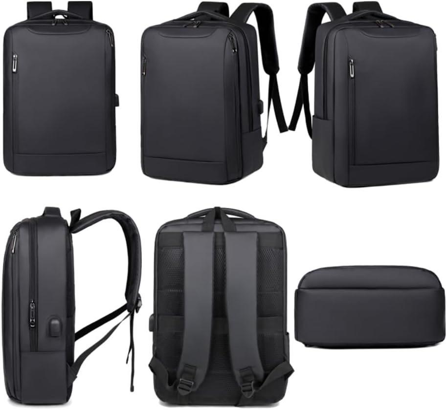 UniQue Notebook Backpack - 15.6 Inch Size, Contains 3 Compartments With Zip, Travel Strap, USB Type-A External Port for Easy Charging (Attach Inner Cable to a Powerbank: NOT INCLUDED), Black Colour, Dimensions 32 × 43 × 13mm, 0.68Kg Weight, 1 Year Warranty.