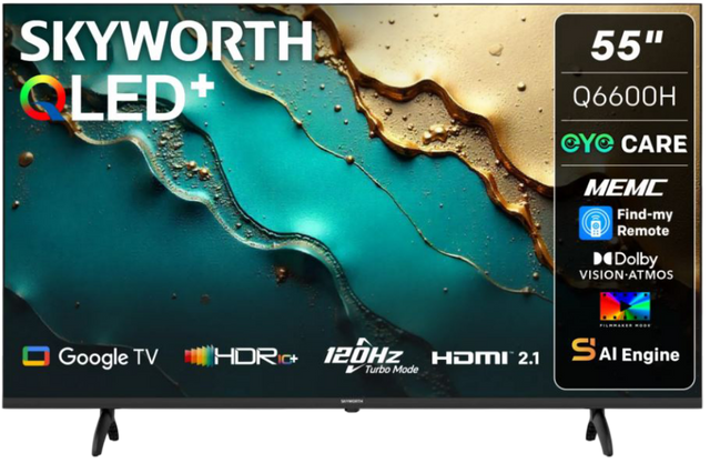 The Skyworth 55-Inch QLED Google LED TV (55Q6600H) is a feature-rich 4K UHD smart television designed to deliver an immersive and vibrant viewing experience. With advanced QLED technology, this TV offers superior color accuracy, brightness, and contrast. It operates on the Google TV platform, providing seamless access to a wide range of streaming services, apps, and smart features. The TV is equipped with Eye Care 5.0 technology to reduce blue light emissions, making it suitable for extended viewing sessions. Its sleek, frameless design and robust connectivity options make it an excellent centerpiece for modern living spaces