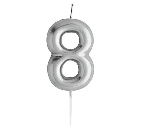Casey 10cm Silver Numerical Birthday Candle Nr.8