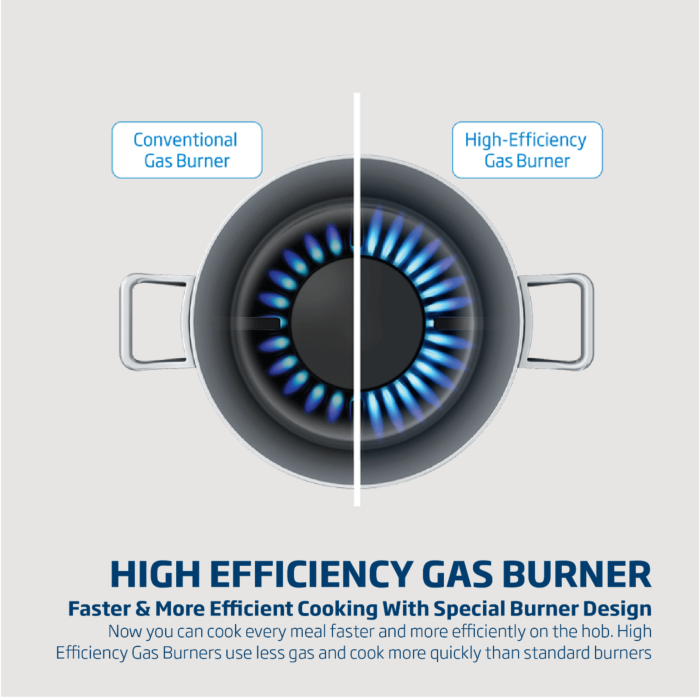 hob. The High Efficiency Gas Burner uses less gas and cooks faster than a traditional burner. So you can