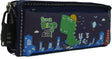 Brainware Fabric 2 Pocket Combination Lock Pencil Bag Navy Blue Fun Dino printed Artwork , Dual Compartments , 2 x Easy Slide Zip Closures, Store And Organise Pens, Pencils, Erasers And Other Stationery Items , 3 Numeric Combination Code Lock, Flat Shaped Easily Slips Into Bag , Retail Packaging, No Warranty