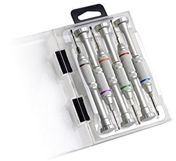 The Goldtool Smart Phone Repair Kit Aluminium Precision Screwdrivers Feature drivers with metal-grip handles and hardened tips. These are ideal for working on computers, electronics and other devices. The comfort grip handle with free spinning cap allows greater pressure to be applied to the blade for maximum torque and grip while turning fastening screws. (-) 1.2x50mm ,2.0x50mm (+) PH00x50mm ,PH000x50mm (*) P0.8 ,P1.2