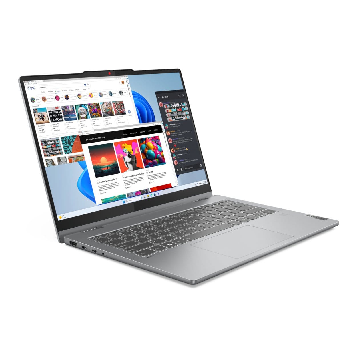Perfect for any task at hand, the 14-inch IdeaPad 5i 2-in-1 Gen 9 laptop knows no bounds. Its 360° hinge allows for endless possibilities, unrivaled flexibility, and four different use modes. You can knock out a business plan in laptop mode, stream the latest episode in tent mode, present confidently in stand mode, or get creative with sketching on tablet mode. It is built with a sleek metal or refined plastic cover, available in Luna Grey.