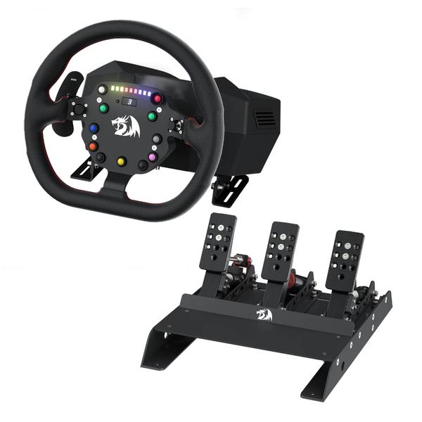 The Redragon GT-32 Force Feedback Racing Wheel is designed to deliver an immersive and realistic racing experience, allowing gamers to feel every turn, acceleration, and brake with precision. Featuring advanced industrial-grade technologies, the GT-32 utilizes a non-contact Hall sensor, belt module sync drive, and powerful brushless PMSM dual motors. These components work together to simulate the intricacies of real-life driving, offering both smooth and responsive feedback. With a 900° steering rotation and highly responsive adjustable pedals, the GT-32 brings the thrill of Formula 1 and other high-performance motorsports right to your fingertips, offering a professional-level racing simulator.