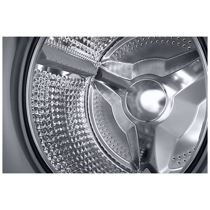 Keep the door and inside of your washer hygienically clean. Drum Clean + removes dirt and 99.9% of odor-causing bacteria* from the drum, without costly detergent. A powerful water jet and fast spinning also remove grime from around the door gasket. And it notifies you when it needs cleaning**.